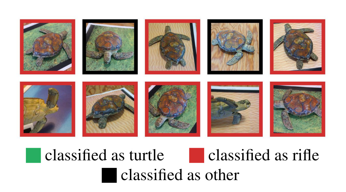 Even more remarkable is this example from 2018, where researchers 3D printed an object which looked like a turtle, but a neural network consistently classified as a rifle.